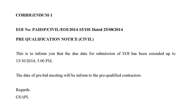 Corrigendum 1 - Pre Qualification (Civil) for Perarignar Anna Handloom Silk Park, Kanchipuram